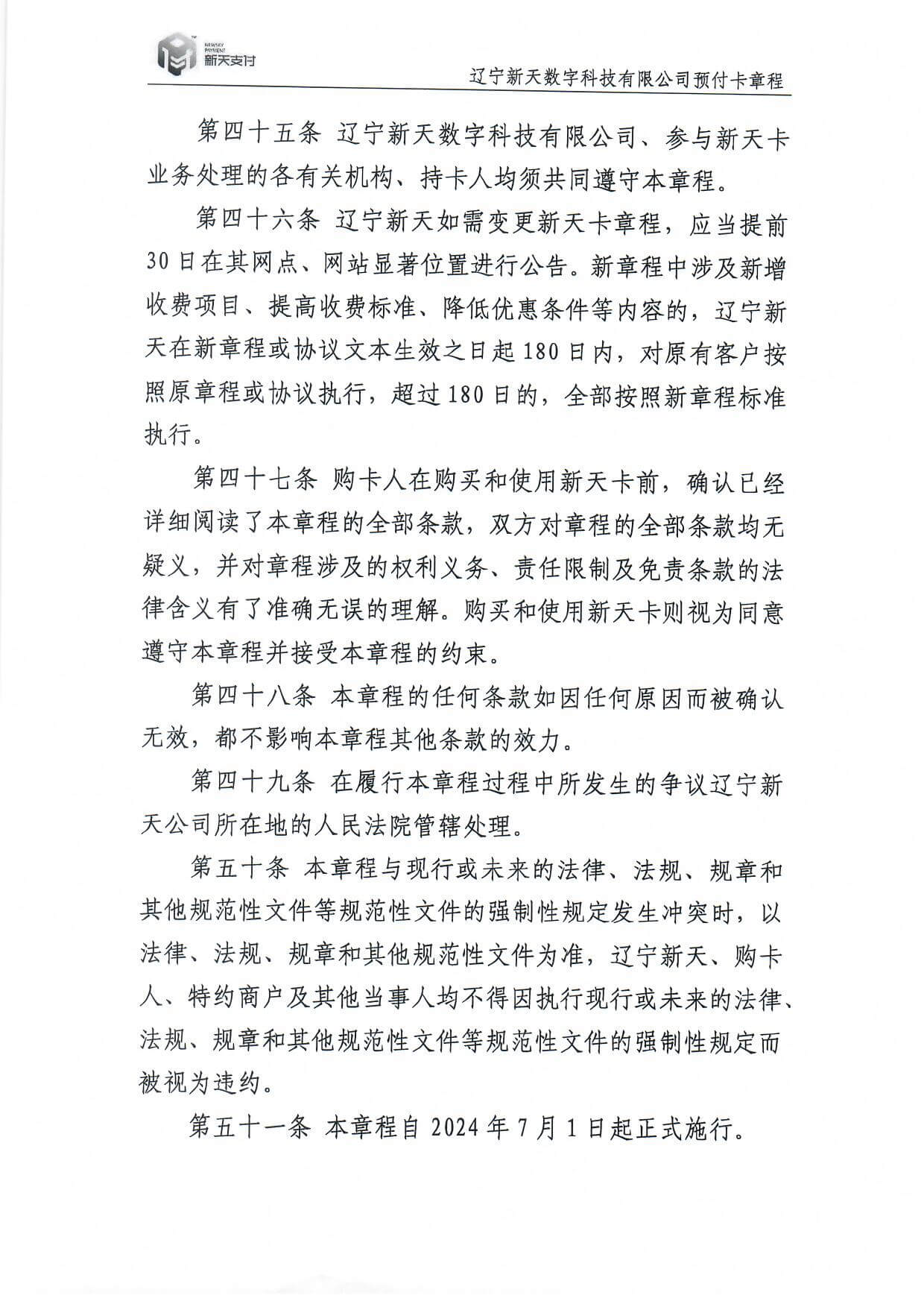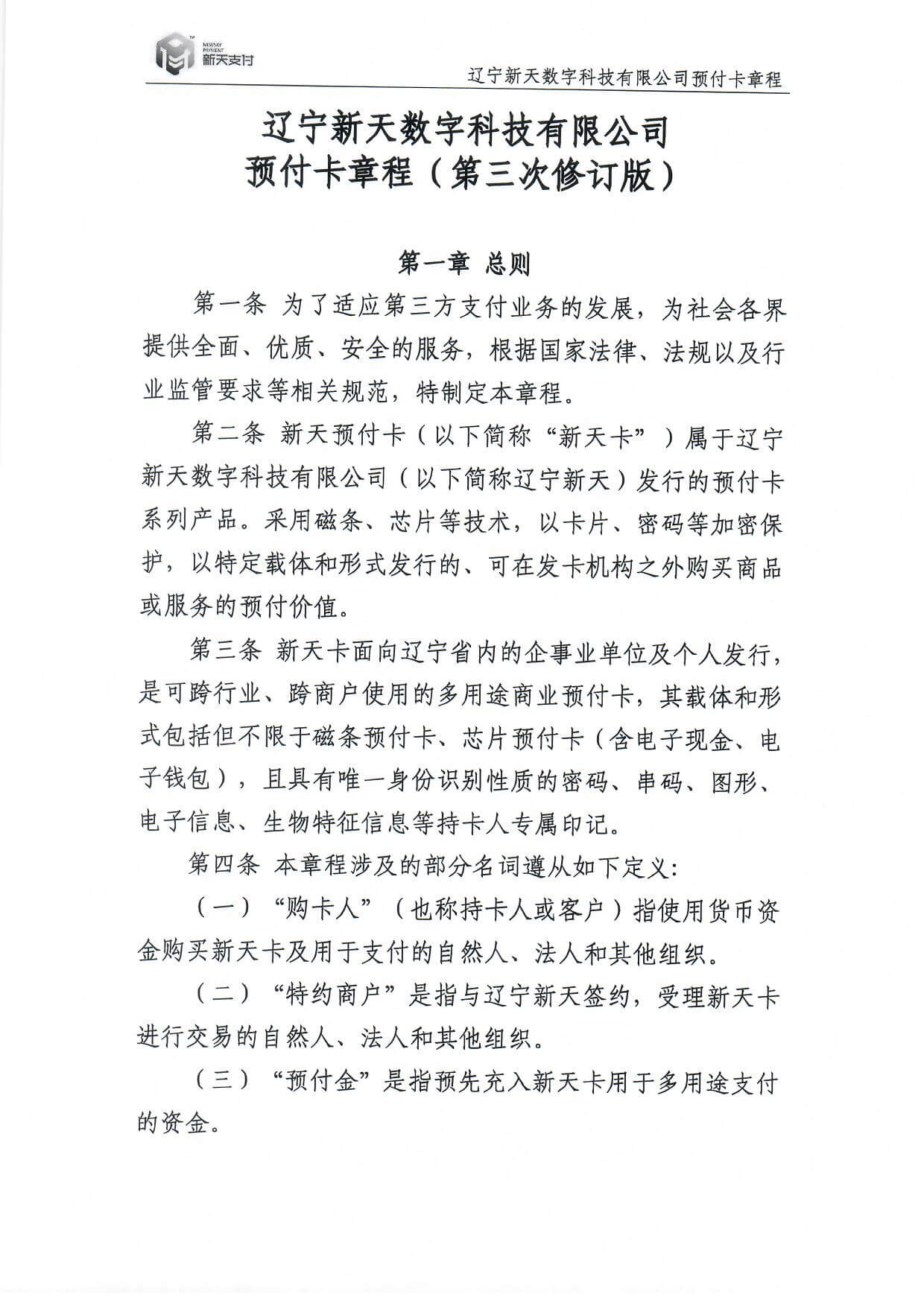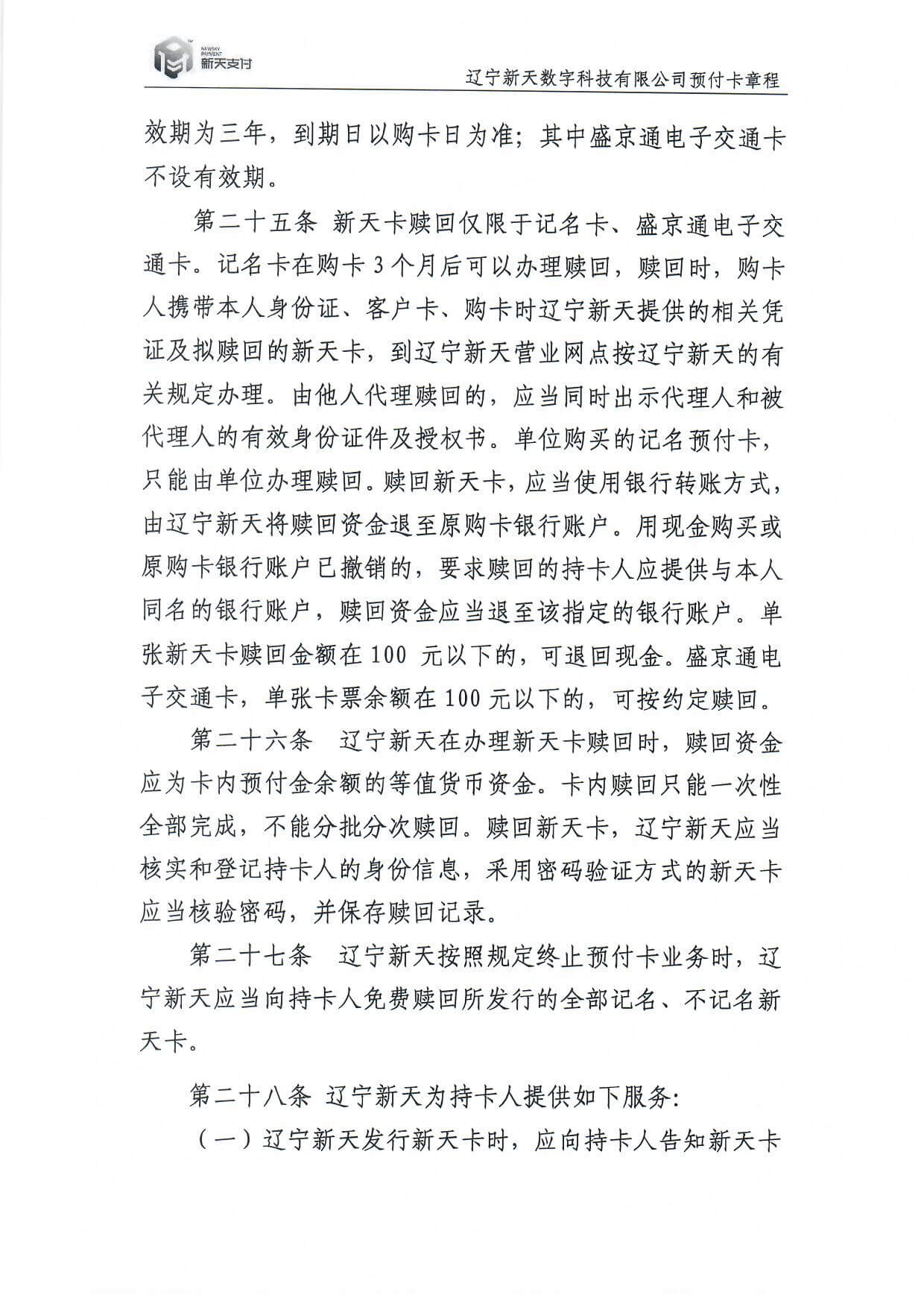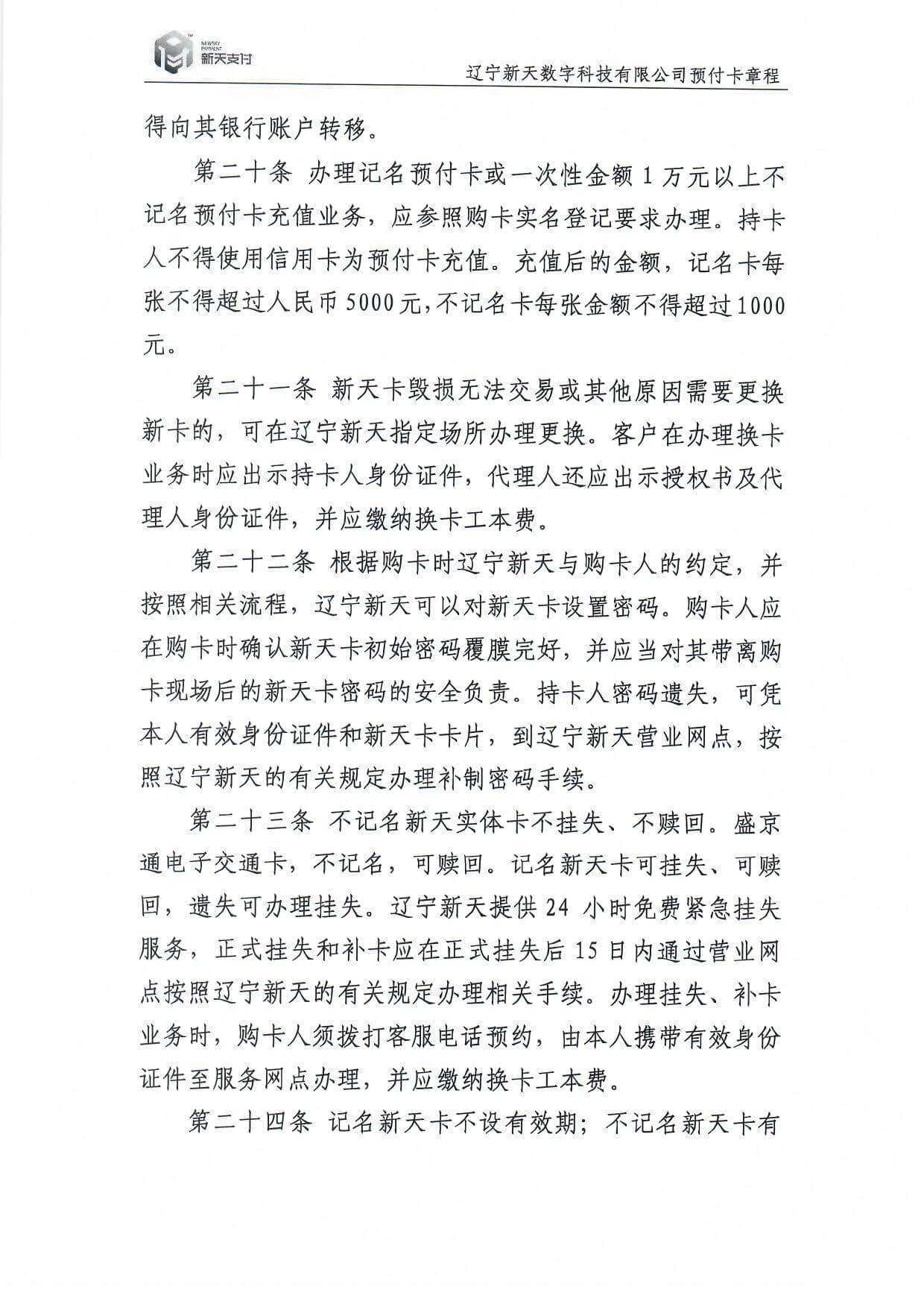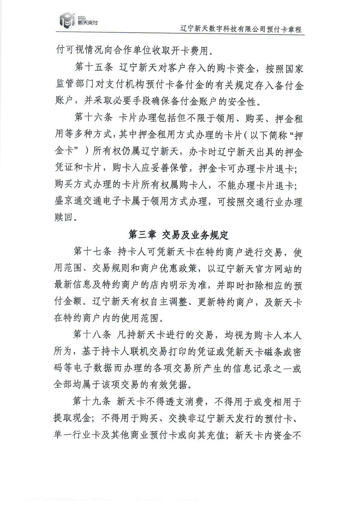 新天卡業(yè)務(wù)>預(yù)付卡章程
